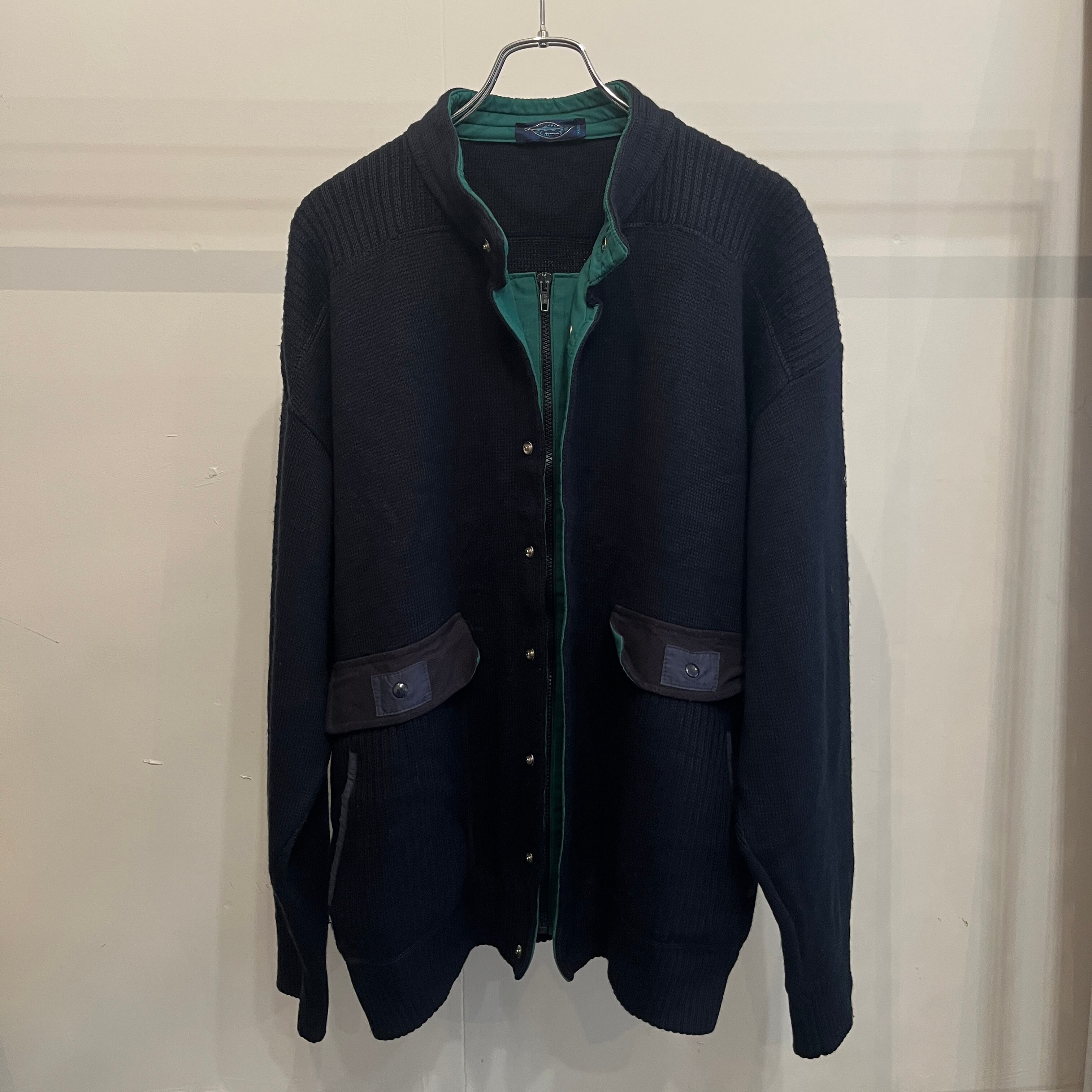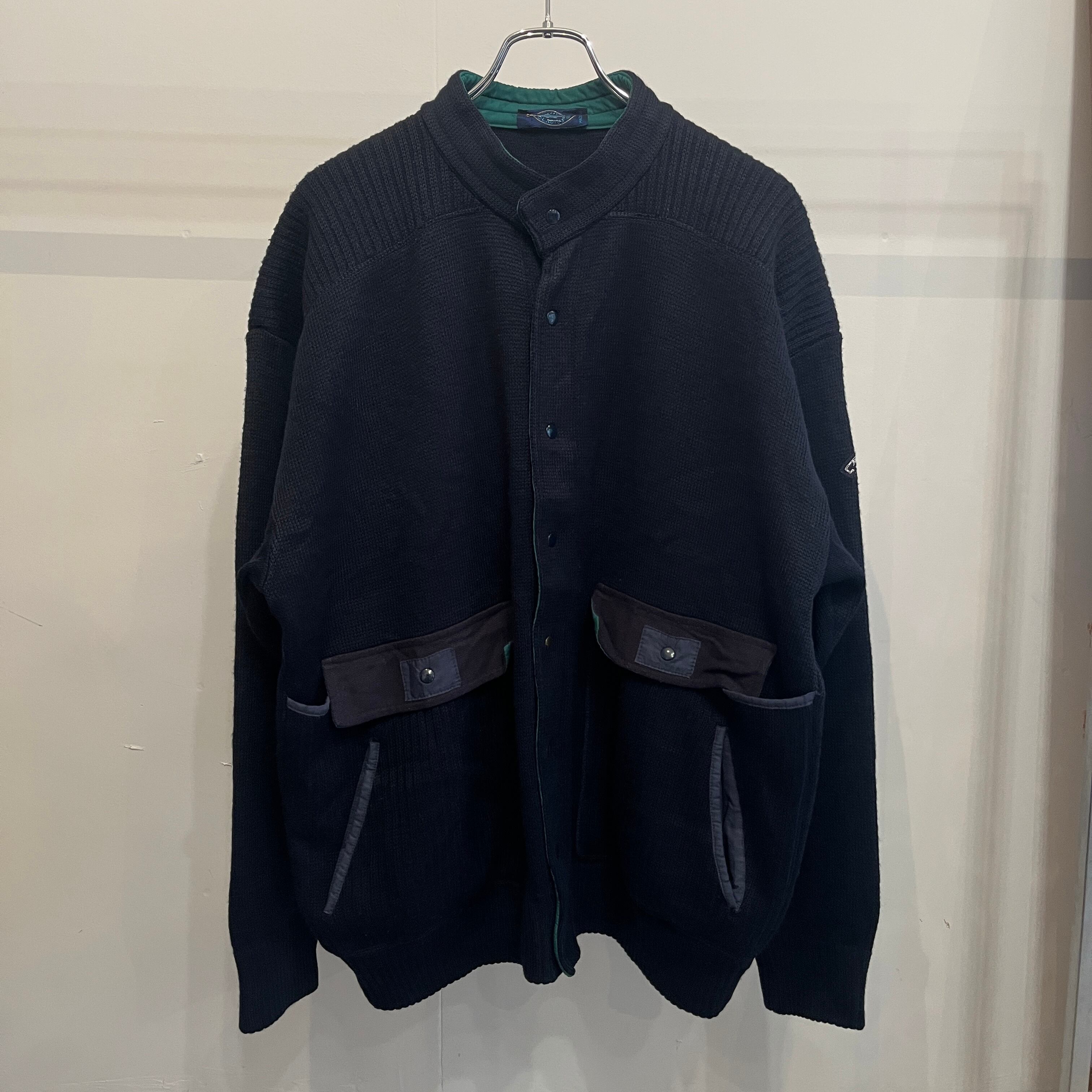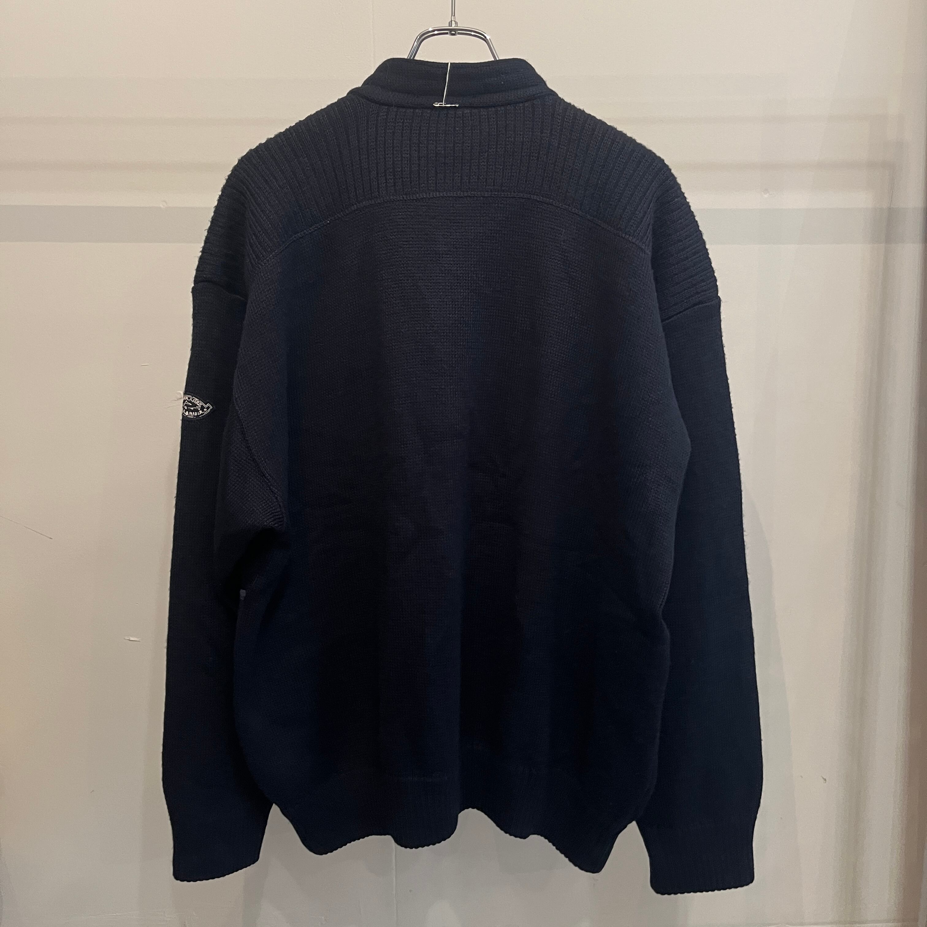 ユーロらしい配色のジップ+ボタンのセーター。
