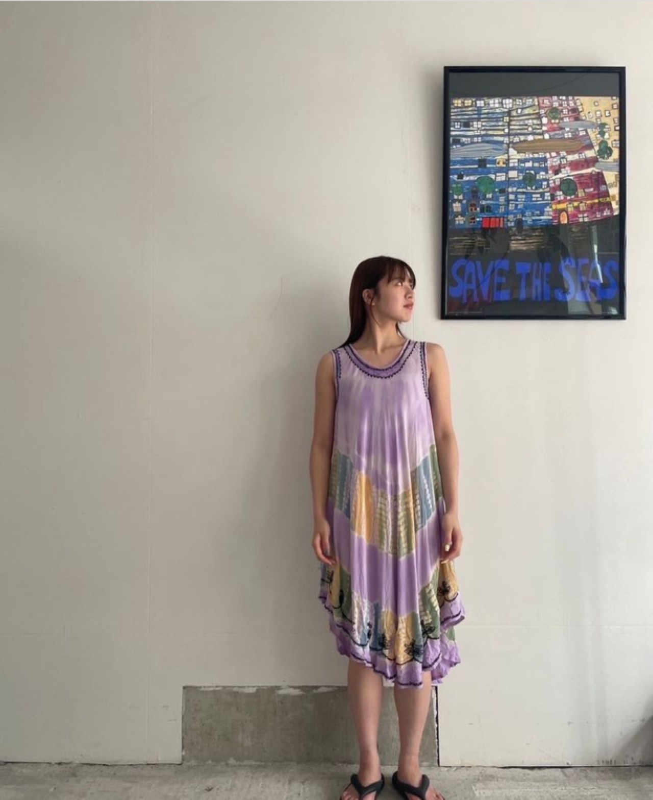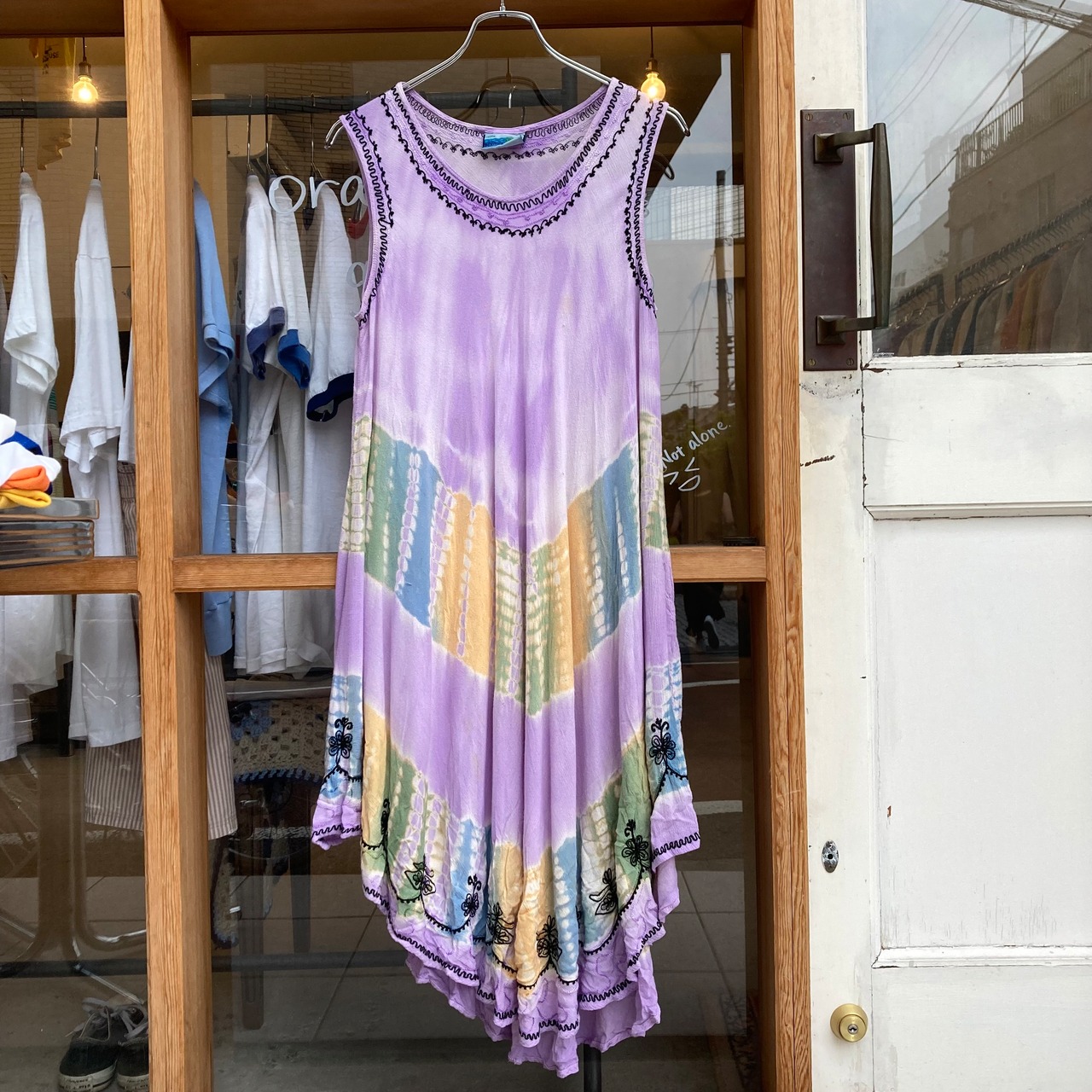 タイダイ柄のようなワンピース。
