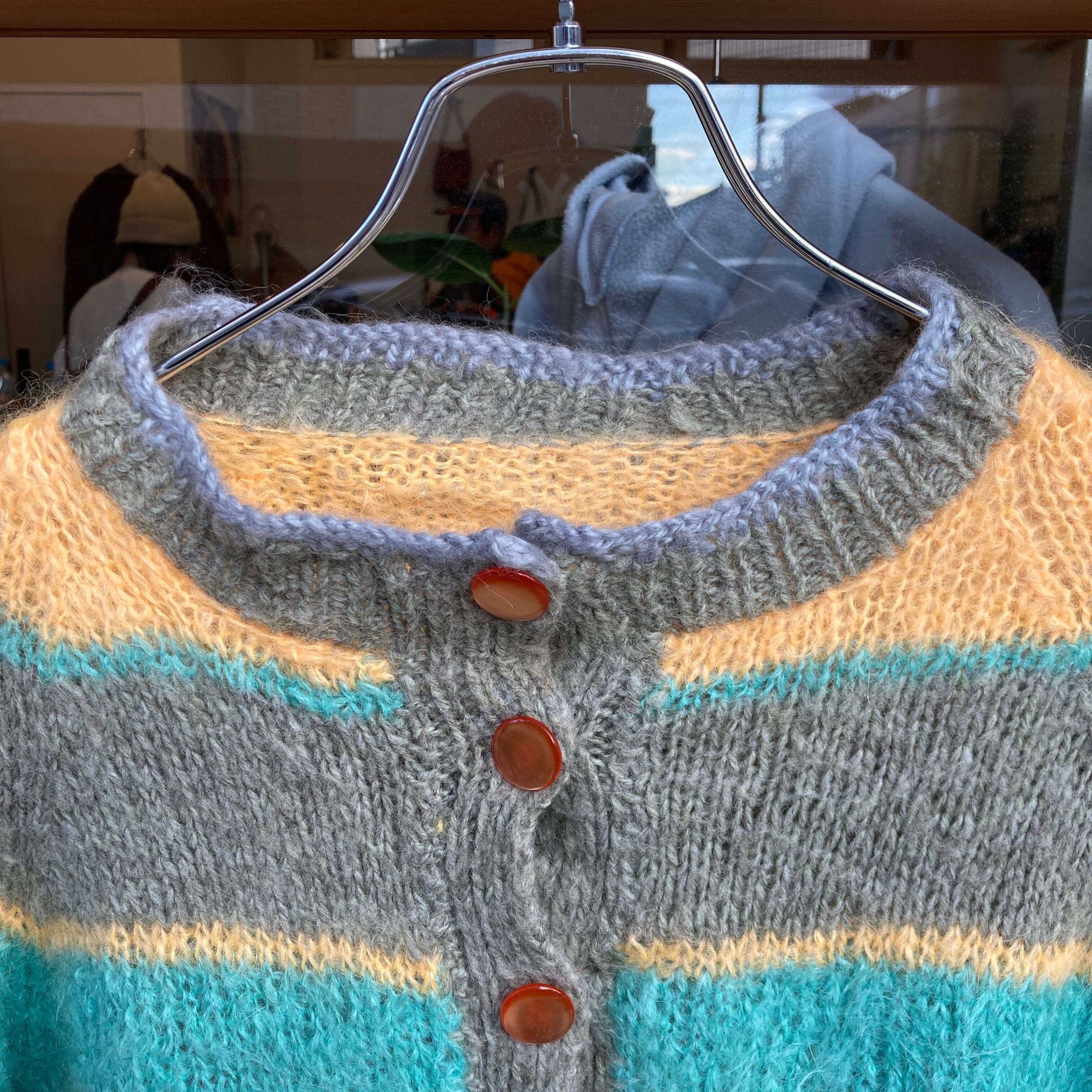 モヘアカーディガン。
